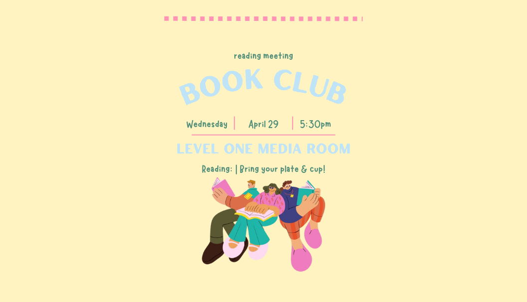 Monthly book club with book discussions (NO SPOILERS), recommendations and time to read and swap books