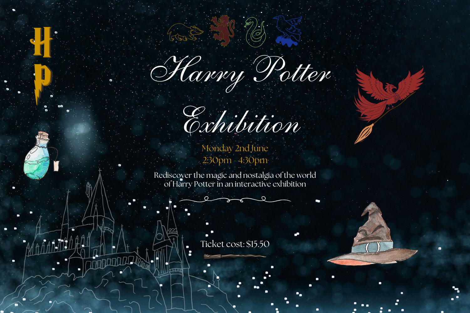 Feel the nostalgia while celebrating some of your favourite moments from the Harry Potter series! Discover the magic as you get up close with authentic costumes and props, earn points for your Hogwarts house, brew potions, cast spells, and practise your Quidditch skills!